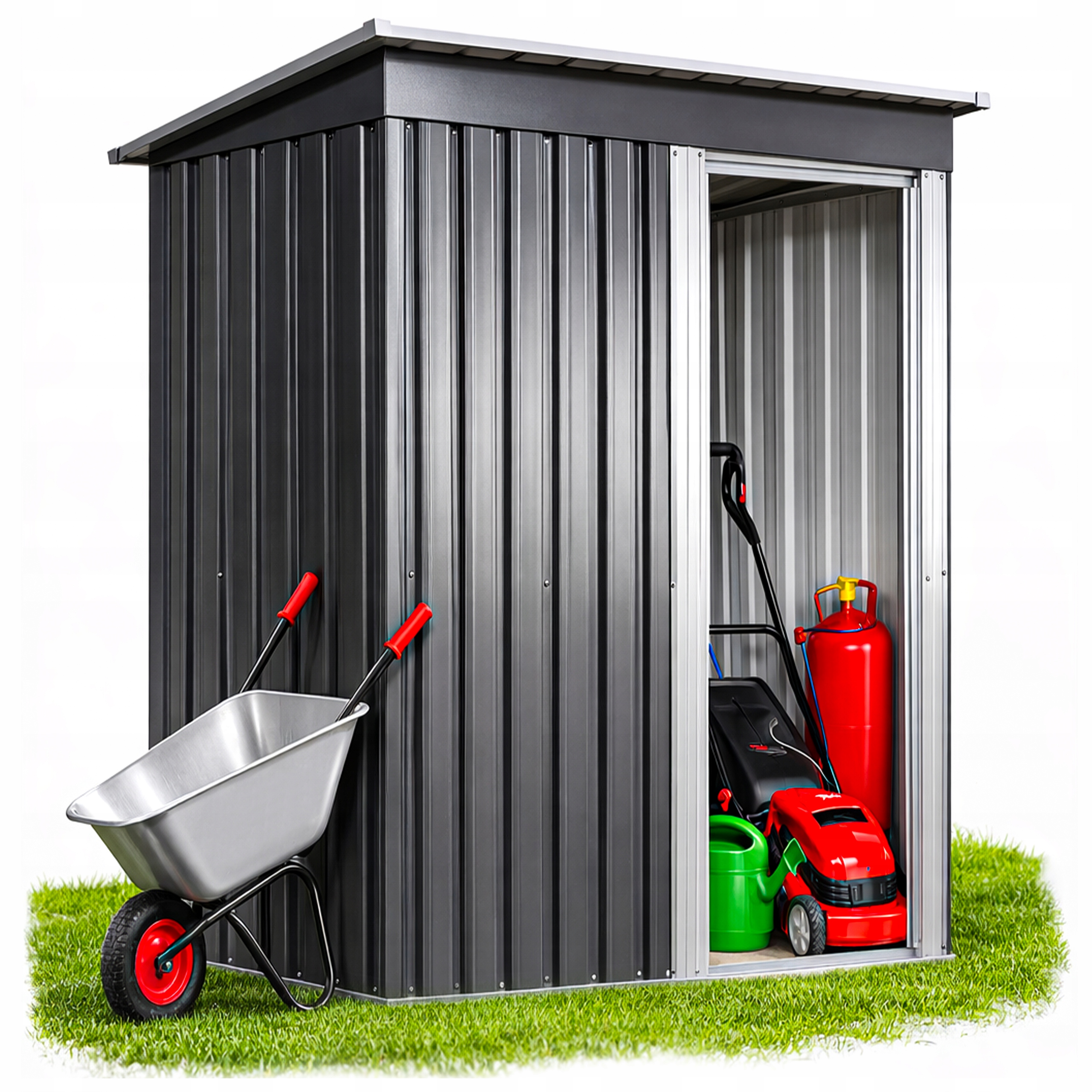 Grabie, łopaty, konewki, opryskiwacze, wąż ogrodowy, doniczki, nawozy i inne akcesoria mogą być przechowywane w jednym miejscu. Domek pomaga uporządkować przestrzeń wokół domu i odciąża garaż, piwnicę lub pomieszczenie gospodarcze.