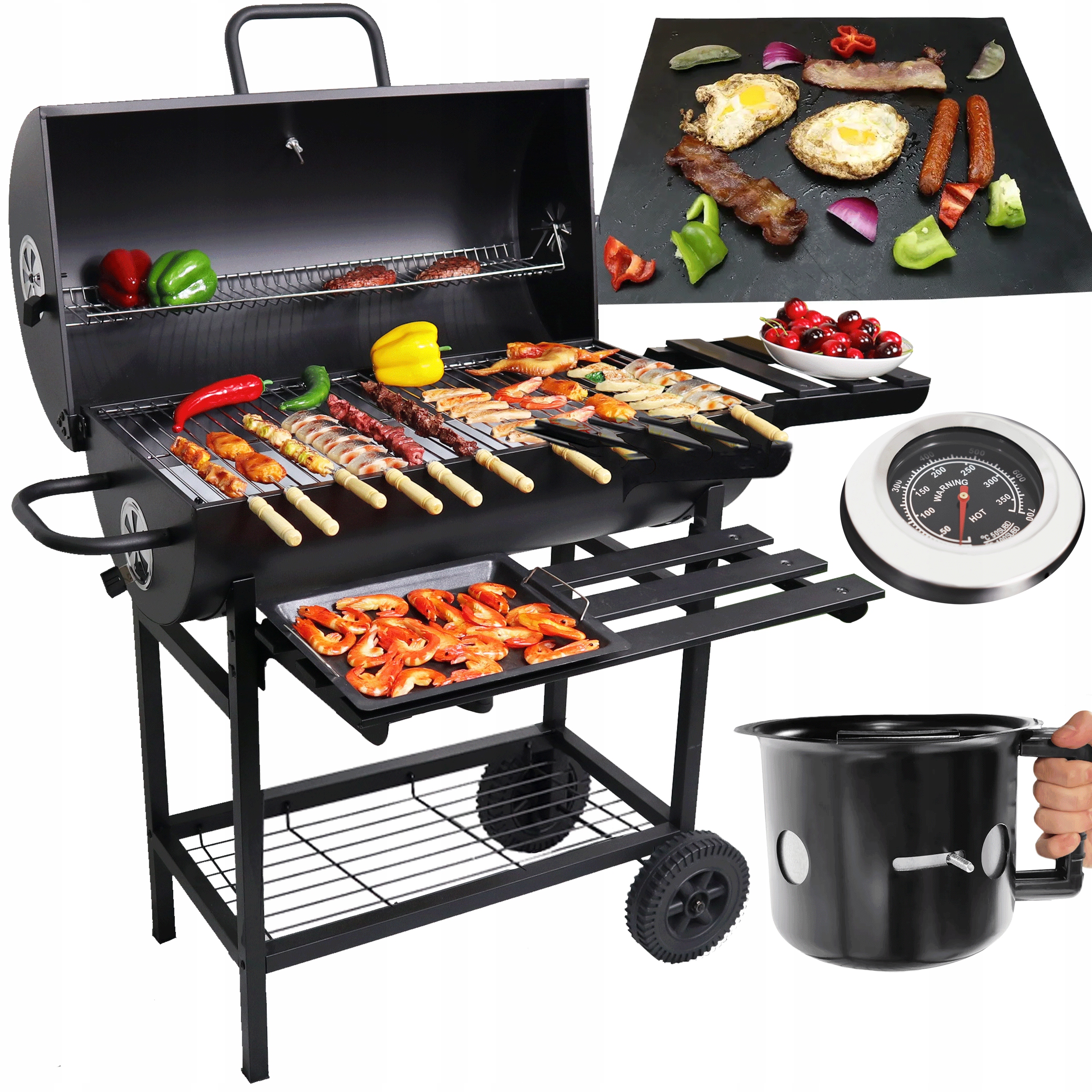 Grill Węglowy Ogrodowy z POKRYWĄ Duża Beczka Popielnik Termometr Półki Materiał stal