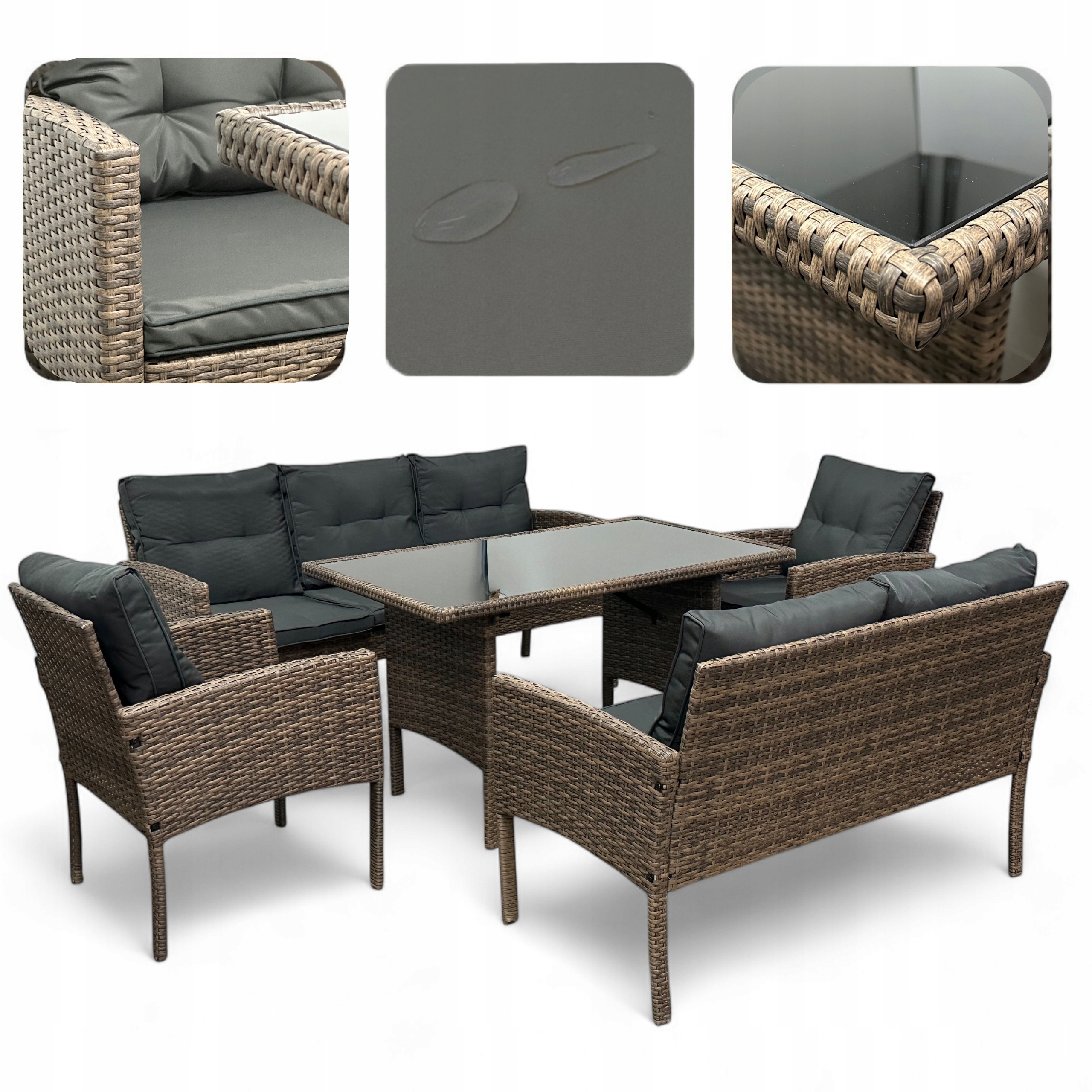 ZESTAW MEBLI OGRODOWYCH MTG SFS078-2 MEBLE OGRODOWE TECHNORATTAN JASNY BRĄZ Waga produktu z opakowaniem jednostkowym 56 kg